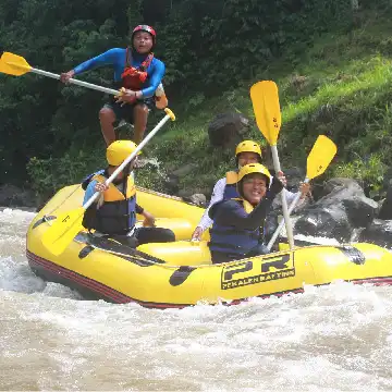 Fasilitas: Rafting Trip Atas, Welcome drink, Air mineral, Transport lokal, Guide & Rescue Team, Rest Area, Makan Siang, Free Foto, Free Video, Asuransi, Basecamp, Live Music